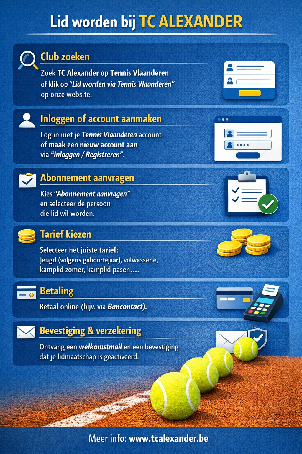 Zich lid maken van TC Alexander voor 2026 verloopt via de website van TennisVlaanderen.